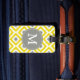 Monogrammed Yellow Grey Diamonds Ikat Pattern Luggage Tag