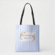 Sac fourre-tout à rayures bleues et blanches avec insert de fleur pour ajouter votre nom et titre personnalisé (peut être changé en Maid of Honor). Ajoutez également votre date de mariage. Un cadeau parfait pour femme de chambre qu'ils peuvent utiliser pour apporter leur maquillage et leurs chaussures à l'église pour se préparer.