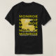 The T-shirt design saying "1845," "Monroe" and "The Twin Cities of Northeast Louisiana" is colored black with yellow and white ink in it. It is made out of 100% cotton.