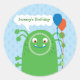 Fun and cute birthday seal label with a monster theme. Great for an energetic boy that loves funny monsters and other harmless creatures. Features a big, fury, green monster holding balloons with a comic book type sign to announce the event title. Lovable character to set an adventurous mood for your party. Use it to seal envelopes or for party favours. Theme appropriate for Halloween or all year round. Add your own wording.