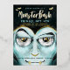 Monster bash vampire-themed Halloween party real foil invitation design. The design features our own hand-drawn illustration of a close-up view of a vampire monster's face. "Monster Bash" is displayed in stylish brush script handwriting with the Halloween party details displayed over the vampire artwork to create a bold and unique Halloween party invitation design. The reverse side features a grungy and rustic black stripe design. All illustrations contained in this bold vampire Halloween theme invitation are hand-drawn original artwork by Moodthology.