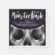 Monster bash Skeleton-themed Halloween party napkin design. The design features our own hand-drawn illustration of a close-up view of a Skeleton monster face wearing a dark purple top hat. "Monster Bash" is displayed in a stylish brush script handwriting in white displayed over the skeleton artwork to create a bold and unique Halloween party design. All illustrations contained in this bold Skeleton Halloween theme design are hand-drawn original artwork by Moodthology.