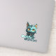 Our Monster Cat Sticker features a teal cat with yellow eyes dressed up as a monster. Under him are the words "Cuddle Monster". Leave the saying as-is or customize it to fit your own needs. This sticker is great for decorating a Halloween or birthday gift bag, handing out with treats, or presenting as a class reward. It can even be used for decorating water bottles, because it's waterproof.