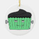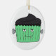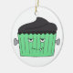 Ornament with Frankenstein's monster illustrated in cupcake form. Image is on both sides. Add your own custom text. Perfect for a quirky tree with a darker theme.