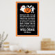The design features a Halloween pumpkin, ghost, vampire bat, zombie, Satanic Cross and Devil's pitchfork, a cool Halloween poem and is finished with matching editable wording.