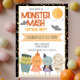 Bring the fun of Halloween to life with this playful kids’ party invitation featuring friendly monsters, a bright orange disco ball, and festive confetti accents. Perfect for a child-friendly costume party. The cheerful characters—Frankenstein, pumpkin, witch, and mummy—set the tone for a fun and non-scary Halloween celebration that both kids and parents will love.