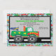 Start your celebration off with this perfect Monster truck invite. Make that special boy's birthday a memorable one! This is a bright green truck with a red smile with yellow teeth in the front of the truck. it has large, big black tires. It's on a street. It has a chequered silver/ grey background with a black border. The outside of this invitation has a all different coloured monster trucks all over it. Personalize it with your party information. Check out the many other products and colours in this line. © JW Illustrations