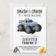 A monster truck invitation, featuring a blue monster truck with flames. Edit the text so it can be used for your party.