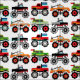 Fun monster truck fabric. Background color is customizable.