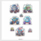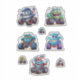 A vibrant sticker sheet showcases lively monster trucks with playful designs, including adorable characters adorned in patterns and colours. Ideal for crafts, decor, and children's activities, these stickers add a dash of fun to any creative endeavour.