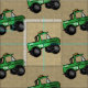 Green monster trucks design over a natural colour blend of tan and brown shades.