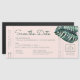 Blush Pink and Green Boarding pass plane ticket style save the date magnet with a large monstera leaf and modern and casual fonts perfect for a tropical destination wedding, beach wedding, or island theme marriage celebration will look great on your guests' fridge as they await their departure date to travel to your event. All fonts and background colour are editable to match your tropical wedding style.