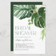 Invités Invitations à votre événement avec cette invitation personnalisable à la papeterie de douche nuptiale. Il présente des illustrations aquarelles de feuilles monstères aux accents de feuille d'or faux. Personnalisez cette invitation à la douche tropicale nuptiale en ajoutant le nom, l'heure, la date et d'autres détails de l'événement. Cette invitation à la douche nuptiale verte est parfaite pour les douches nuptiales d'été.