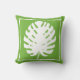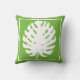 Monstera Leaf Green White Coastal Modern Throw Pillow