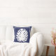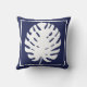 Monstera Leaf Navy Blue and White Coastal Modern Throw Pillow