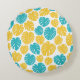 Monstera Leaves in Turquoise, Yellow, and White Round Pillow