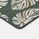 Monstera March brings tropical foliage into rhythmic focus. Cream, beige, and light brown monstera leaves outlined in deep green dance across vertical stripes of muted teal and forest tones, creating a layered composition that feels both grounded and bold. Ideal for desk mats, textiles, or decor that celebrates botanical beauty with a modern twist.