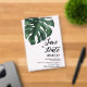 Impress your guests (family and friends) with elegance and charm using our Save the date acrylic Card, featuring tropical breeze with Monstera leaf and beautifully handwritten font.