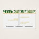 carte de visite feuille tropical vert et or. Il comprend des feuilles de Frlit Leaf Philodendron (Monstera deliciosa) ou de Plante de fromage suisse et des feuilles de palme en vert avec contour d'or. Votre texte est dans un cadre blanc avec contour doré.