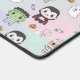 Un matelas de bureau mignon et ludique avec un motif fantaisiste d'adorables monstres d'Halloween caricaturaux comme des fantômes, des momies et des vampires contre un arrière - plan pastel doux.