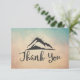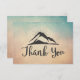 Une carte de remerciements au style extérieur minimaliste. Conçu avec une illustration d'une montagne avec des rayons de soleil venant de l'arrière. Le mot "merci" écrit ci-dessous. Arrière - plan est une couleur parchemin avec une pointe de bleu.