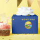 Within the seal, a plow, shovel, and pick rest in a field in front of the Great Falls of the Missouri River. The ribbon contains the state motto, Oro y plata (Spanish for "Gold and silver"). The current flag was adopted in 1905, and the word "Montana" above the seal was added in 1981. In 1985, the flag was again modified to specify the font used in "Montana:" Helvetica Bold. Before it was adopted as a state flag, it was used by Montana troops deploying for the Spanish/American War.
