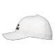 Fits well due to elastic edging, not adjustable. Good qualty material. Good quality embroidering. Subtle lettering (white on beige) just as my wife likes.