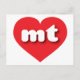 This postcard features a vibrant red heart containing the bold, white, lower case letters mt, a playful abbreviation for Montana, the treasure state. The reverse side of the postcard is blank, awaiting your handwritten sentiments or customized text