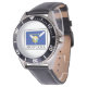 My husband loves the watch, he likes the dial, the graphics, the band, and it keeps perfect time.