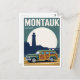 Capture the classic coastal style of the Hamptons with this striking Montauk, New York, travel poster! This stylized design features the iconic Montauk Lighthouse silhouetted against a large, full moon, with a beautiful vintage Woody Wagon parked prominently in the foreground. Rendered in a cool, limited color palette, this print evokes the luxury and nostalgia of mid-century coastal road trips. It makes an excellent piece of wall art for a beach house, car enthusiast, or anyone who loves the East End of Long Island.