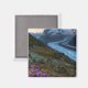 This photo features wildflowers on rocks with Monte Rosa glacier on background, Zermatt, canton of Valais, Switzerland.