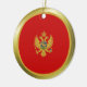 Both sides of this ornament feature the flag of Montenegro morphed into a circle with a golden rim. Simple Montenegrin decoration for your home.