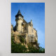 Poster print of swallows flying around medieval Montfort castle built on the limestone cliffs along Dordogne river, Vitrac, France.