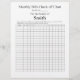 Here is a page where you can add your bills to the list and each month when you pay that bill check it off to keep up with it. Personalize with the name of your choice. This is plain with black writing and white background. Customize if you would like a different colour background. At the top of the page it says "monthly bills check off chart for the year ____" and it also say "for the family of Smith" Comes in very handy.