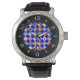 Un drapeau nautique partout sur le motif coloré dans le style des dames présenté sur une idée cadeau de montre de mode personnalisée.