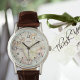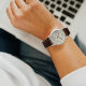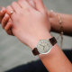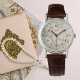 Montre à monogramme avec carte de La Mecque pour femmes – Boîtier argenté – Bracelet en cuir marron – Eid | Hajj | Omra | Cadeau de mariage | Cadeau d'anniversaire de mariage