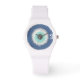 Un design rustique et abstrait basé sur le charme traditionnel grec de la bonne chance. Simple dans sa conception, la "3" heure unique produit un look calme et sans hâte et ressemble à une vague douce de l'océan. La palette épurée du bleu de mer, du blanc et de l'aqua vous rappellera les plages majestueuses de la Méditerranée. Cette montre particulière avec son bracelet en silicone blanc démarre le design magnifiquement et est parfaite pour porter tout l'été. Les montres sont disponibles dans de nombreux styles différents, les matériaux de courroie, et les couleurs visage/cadran; vous en trouverez certainement un que vous aimez.