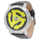 La montre à 45 tr/min, une montre cool très rétro pour le collectionneur de vinyle ou ventilateur rétro. Depuis les années 50, 60 et 70, ces adaptateurs ont été utilisés pour jouer des disques vinyle sur des tables tournantes. Le faire un grand cadeau pour quelqu'un spécial.