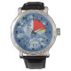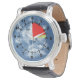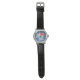 Pas un altimètre réel, les mains se déplacent dans le sens des aiguilles d'une montre, mais la zone de danger entre minuit et 3h du matin est mise en évidence en jaune et rouge pour les noctambules. L'horloge altimétrique branchée montre le poignet sur un arrière - plan de ciel bleu avec des nuages, calibrée pour 12 000 pieds de chute libre pour les parachutistes.