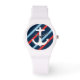 Un garde-temps élégant est toujours un cadeau classique. La conception comporte une ancre blanche de navire contre une marine nautique et un arrière - plan rouge.