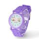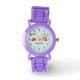 Une montre avec une jolie illustration représentant un lapin, un ours et un cerf vêtus d'un engin festif. Adorable et capricieux.