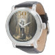 Revenez dans le temps avec notre montre Art Déco Retro Black & Gold Mariage Anniversary Watch, rayonnant l'élégance intemporelle. #ArtDeco #Retro #BlackGold #WeddingAnniversary Le texte est entièrement personnalisable, ce qui vous permet de l'ajuster pour n'importe quelle année. Il s'agit d'un autre 100% original Snuggle Hmaster Deisgns.
