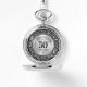 Joyeux 25e anniversaire mariage horloge personnalisable avec un cadre royal en argent ornemental sur un arrière - plan noir. Commémorez votre mariage en argent en donnant cette montre de poche.