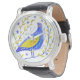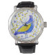 Montre Aquarelle moderne Bleu et Jaune Oiseau Art