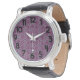 Cette montre pour hommes a un design art déco de diamants et demi-diamants en aqua sur un champ de violet. Comme ce design mais veulent des couleurs différentes ? Message-moi.