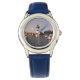 Cette montre à bandes bleues est conçue avec ma photo du célèbre phare rouge et blanc de Hilton Head, SC.