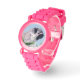 Jolie peinture d'un chiot carlin aux couleurs faunes sur le visage d'une belle montre au poignet.