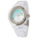 Une montre au design estival très dynamique. Image turquoise / aquarelle vert aqua avec une bordure ondulée en faux or. Élégant et adorable.