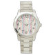 Cette montre pour femmes a un design moderne du milieu du siècle de rectangles répétitifs en turquoise, orange, betterave et orange sur un champ de blanc. Si vous aimez le design mais préférez différentes couleurs, envoyez-moi un message.