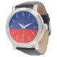 Ce visage de montre est divisé entre bleu foncé et rouge.